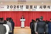 (시사미래신문) 김포시가 2일 오전 10시, 시청 본관 3층 대회의실에서 ‘2026년도 시무식’을 열고 붉은 말 병오년(丙午年) 새해의 힘찬 출발을 알렸다. 이날 시무식에는 김병수 김포시장을 비롯해 실·국·소장, 부서장 등 간부 공직자 100여 명이 참석해 새해 시정 운영 방향을 공유하고, 시민 중심의 시정 추진과 새로운 도약을 향한 결의를 다졌다. 행사는 국민의례를 시작으로 공무원 헌장 낭독, 신년사 순으로 차분하고 엄숙하게 진행됐으며, 참석자들은 시무식을 통해 공직자로서의 사명과 책임을 다시 한 번 되새기는 시간을 가졌다. 김병수 김포시장은 신년사에서 “붉은 말의 해는 뜨거운 열정과 강한 추진력을 상징한다”며 “올해는 이 기운을 받아 ‘시민의 상상이 현실이 되는 김포’를 시민 한 분 한 분이 실제로 느낄 수 있도록 시정 역량을 집중해 나가겠다”고 밝혔다. 아울러 “속도감 있는 행정과 책임 있는 실천으로 김포의 미래 경쟁력을 더욱 높여 나가겠다”고 덧붙였다. 한편, 시무식을 마친 뒤 참석자들은 서로 새해 인사를 나누며 올 한 해 시정 운영에 대한 각오를 공유하는 시간을 가졌으며, 시민과 함께 성장