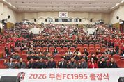 (시사미래신문) 부천FC1995가 22일 부천시청에서 2026시즌 출정식을 열고 창단 첫 K리그1 시즌을 앞둔 각오를 시민들과 함께 다졌다. 부천시는 오는 3월 1일 K리그1 개막전을 치르는 구단이 1부리그에서 당당히 경쟁할 수 있도록 지원하는 동시에, 경기 관람과 문화 체험, 소비가 이어지는 ‘스포츠 기반 지역경제 활성화’를 본격화할 계획이다. ◇ 팬·시민 열기로 가득했던 ‘K리그1 첫 시즌 출정식’ 성황 속 마무리 부천FC1995는 이번 출정식에서 사상 첫 K리그1 무대를 앞두고 구단주와 주요 내빈, 프로·유소년 선수단, 시민과 팬들이 한자리에 모인 가운데 출사표를 던졌다. 시청 로비에서는 한지호·백동규·바사니 등 주요 선수들의 팬 사인회와 스톱워치 이벤트, 포토존 등 장외 프로그램이 열려 현장 분위기를 달궜다. 본 행사에서는 김규민·성신·이충현 등 유망주를 꾸준히 배출해 온 유소년 선수단을 시작으로 프로 선수단과 스태프가 차례로 소개됐다. 부천시는 유소년부터 1군까지 이어지는 축구 생태계를 꾸준히 강조해 왔으며, 지난해에는 부천FC1995 U-18팀이 제47회 문화체육관광부장관배 전국고등학교 축구대회에서