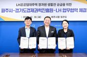 (시사미래신문) 파주시는 30일 경기도경제과학진흥원, 한국토지주택공사 경기북부지역본부와 경과원 파주시 이전에 따른 엘에이치(LH) 공공임대주택 생활관 지원을 위한 업무협약을 체결했다고 밝혔다. 이번 협약은 경과원의 단계적 이전에 앞서 직원들에게 안정적인 정주환경을 제공함으로써 거주지 이전에 따르는 비용 부담을 최소화하기 위한 세 기관간 협력을 강화하는 차원에서 추진됐다. 협약에 따라 한국토지주택공사는 운정신도시 내 공공임대주택 중 보유 공실 일부를 생활관 용도로 활용할 수 있도록 공급 방안을 검토하고, 파주시는 입주 절차와 행정적 지원을 담당한다. 경과원은 대상자 선정과 운영 관리 등 내부 절차를 마련해 실제 입주가 차질 없이 진행될 수 있도록 준비할 계획이다. 김경일 파주시장은 “이번 협약이 파주에 둥지를 틀게 될 경과원 직원들이 걱정 없이 생활할 수 있는 실질적인 지원이 될 것으로 기대한다”라고 말했다. 김현곤 경기도경제과학진흥원장은 “직원들의 주거 부담을 줄이는 것은 이전 성공의 핵심 요소”라며 “세 기관이 함께 만들어가는 협력체계가 앞으로도 좋은 모델이 되길 바란다”라고 전했다. 임수정 한국