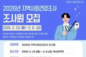 (시사미래신문) 천안시는 내달 6일까지 ‘2026년 지역사회건강조사’를 수행할 조사원을 모집한다고 23일 밝혔다. 지역사회건강조사는 질병관리청이 주관하는 국가승인통계로, 지역 주민의 흡연과 음주, 신체활동, 만성질환 이환 여부 등 건강행태 및 건강수준 전반을 조사하게 된다. 수집된 데이터는 지역 보건의료계획과 건강증진 사업 추진을 위한 기초 자료로 활용된다. 선발된 조사원은 사전 교육을 이수한 후 오는 5월 16일~ 7월 31일 표본 가구를 직접 방문해 조사 업무를 수행하게 되며, 업무가 완료되면 소정의 수당이 지급될 예정이다. 모집인원은 서북구와 동남구 각 6명씩 총 12명이며, 천안시에 거주하는 20세 이상 성인 중 컴퓨터와 인터넷 사용이 가능한 누구나 지원할 수 있다. 참여 신청은 천안시 서북구보건소 건강관리팀으로 방문하거나 우편으로 신청서를 제출하면 된다. 이현기 서북구보건소장은 “시의 내실있는 지역 건강통계 산출을 위해 책임감 있게 활동할 시민분들의 많은 참여와 관심 바란다”고 말했다.