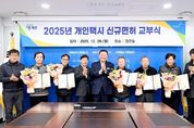 (시사미래신문) 파주시는 지난 29일 '2025년도 개인택시 신규면허 교부식’을 개최했다고 밝혔다. 이날 교부식에는 파주시 개인택시조합장, 개인택시조합 임원 등이 참석해 신규면허자 5명에게 면허를 수여했다. 시는 지난 9월, 증차분 2대와 기존 면허 감차분 3대를 포함한 총 5대에 대해 개인택시 신규면허자 신청 공고를 실시했다. 공고를 통해 접수된 14명을 대상으로 운전 자격, 무사고 기간, 운전 경력 현지 확인 등 엄격한 심사를 거쳐 최종 5명을 신규면허자로 선정했다. 그동안 파주시는 택시 승차난을 해소하기 위해 지속적으로 증차 방안을 모색해 왔다. 국토교통부의 ‘제5차 택시총량제 지침(2025~2029)’시행에 따라 감차가 우려되는 상황에서 자율조정협의회를 통해 최대 증차 비율 10%를 확보하고, 경기도 택시감차위원회에서 증차가 심의·의결됨에 따라 감차 지역에서 증차 지역으로 전환돼 2대 증차에 성공했다. 이에 따라 기존 826대였던 파주시 택시 대수는 2대가 늘어나 총 828대의 택시가 파주시 전역에서 운행하게 됐다. 김경일 파주시장은 “개인택시는 시민들의 일상 이동을 책임지는 중요한 교통수단