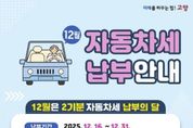 (시사미래신문) 고양특례시 일산동구는 2025년 제2기분 자동차세 총 69,572건, 약 115억 원을 부과하고, 지난 12일 고지서를 발송했다고 밝혔다. 자동차세 납부 대상은 2025년 12월 1일 기준 차량 소유자(자동차·이륜차·기계 장비 등)로, 차량 운행 여부와 관계없이 자동차등록원부상 명의자에게 부과된다. 자동차세는 후납 방식으로 올해 7월 1일부터 12월 31일까지의 자동차 보유기간에 따라 일할 계산돼 부과된다. 납부 기한은 12월 16일부터 31일까지이며 위택스, 지로, ARS(142211), 전국 은행 ATM(신용카드·현금카드·통장), 가상계좌번호 및 지방세입 계좌 등 다양한 방법으로 편리하게 납부 가능하다. 구 관계자는 “자동차세 납세 의무자는 체납으로 인한 불이익을 받지 않도록 기한 내 납부해 주길 바란다”고 말했다.