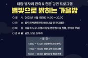 (시사미래신문) 동두천시시설관리공단은 오는 11월 1일 동두천자연휴양림에서 가을밤 하늘을 배경으로 별자리와 행성을 함께 관측하는 '천문행사 ‘별빛으로 밝히는 가을밤’'을 개최한다. 이번 행사는 시민이 자연 속에서 직접 천체를 관측하며 과학문화의 즐거움을 체험하고, 가족 단위 방문객에게는 휴식과 소통의 시간을 제공하기 위해 마련됐다. 행사는 오후 2시부터 8시까지 자연휴양림 어울림동 세미나실 및 잔디마당 일원에서 진행된다. 낮에는 태양 전용 망원경을 활용한 태양 관측 체험, 저녁에는 전문 강연과 함께 달·행성·별자리 관측 프로그램이 운영된다. 또한 시민 참여형 이벤트인 ‘별자리 퀴즈’도 열려 참가자들이 과학을 보다 쉽고 흥미롭게 접할 수 있도록 구성됐다. 이종진 동두천시시설관리공단 이사장은‘별빛으로 밝히는 가을밤’은 가족과 함께 별을 보며 자연의 아름다움과 과학의 신비로움을 동시에 느낄 수 있는 뜻깊은 행사”라며“앞으로도 시민이 함께 참여할 수 있는 ESG형 과학문화 프로그램을 지속적으로 추진하겠다”라고 밝혔다.