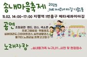 (시사미래신문) 동두천시 송내동 주민자치위원회는 오는 11월 2일 오후 2시부터 지행역 1번 출구 메타세콰이아길에서 ‘2025 송내마을축제’를 개최한다고 밝혔다. 이번 축제는 주민자치센터 프로그램 수강생을 비롯해 지역 학교, 동아리, 학원 등 다양한 주민이 참여해 주민자치 활성화와 지역 문화·예술 교류의 장을 마련하고자 기획됐다. 행사 당일에는 송내동 주민 노래자랑, 주민자치 프로그램 발표회·전시회, 초청공연, 체험부스, 벼룩시장, 먹거리 마당 등 다채로운 프로그램이 진행된다. 특히 주민이 직접 참여하는 노래자랑과 맷돌체조, 트롯고고장구, 실버태권도 등 7개 팀의 프로그램 발표회가 마련돼, 지역 주민들이 그동안 갈고닦은 실력을 선보일 예정이다. 또한 도자기 만들기, 팽이 꾸미기, 만년도장 만들기 등 가족 단위로 즐길 수 있는 체험부스도 함께 운영된다. 이번 축제는 송내동 주민의 화합과 자긍심을 높이는 것은 물론, 주민자치센터 프로그램 홍보와 신규 수강생 유치에도 도움이 될 것으로 기대된다. 아울러 지역 소상공인과 시민이 함께 참여하는 벼룩시장도 열려 지역경제 활성화에도 기여할 전망이다. 행사를 주최