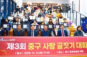 (시사미래신문) 인천 중구의회는 12월 16일, 중구 평생학습관에서 개최된 제3회 중구사랑 글짓기 대회 시상식에 참석해 수상자들을 축하했다고 밝혔다. 이날 시상식에는 강후공 의원이 참석해 수상자들에게 축하 인사를 전하고, 참여 학생들과 관계자들을 격려했다. 강후공 의원은 “이번 대회를 통해 지역에 대한 이해와 자긍심이 자연스럽게 형성되고, 올바른 가치관과 표현력을 기르는 계기가 되길 바란다”라며 “중구의회도 지역 정체성과 공동체 의식을 높이는 다양한 문화·교육 활동을 지속적으로 응원하겠다”라고 밝혔다. 또한 앞으로도 주민 참여형 문화·교육 행사를 적극 지원하고, 지역사회와 소통하는 의정활동을 이어갈 계획이라고 말했다.
