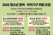 (시사미래신문) (재) 군포시청소년재단 군포시청소년지역센터 광정동청소년문화의집은 2026년을 맞아 다양한 청소년 참여ㆍ자치기구를 모집한다고 밝혔다. 이번 모집은 청소년운영위원회, 청소년봉사단, 청소년동아리 등 총 3개 분야로 진행되며, 청소년의 자율성과 주도성을 기반으로 한 참여 활동을 중심으로 운영된다. 청소년운영위원회 ‘씨밀레’는 광정동청소년문화의집 운영에 직접 참여하는 공식 청소년 참여기구로, 정기회의와 시설·프로그램 모니터링, 의견 제안 및 간담회 등을 통해 청소년의 목소리를 정책과 운영에 반영하는 역할을 수행한다. 모집 대상은 9세부터 24세까지의 청소년 15명이다. 청소년봉사단 ‘바이크’는 환경과 지역사회를 주제로 한 실천 중심 봉사활동 조직이다. 캠페인 운영, 지역 행사 지원, 봉사 기획 활동 등을 통해 나눔의 가치를 실현하며, 9세부터 19세까지 청소년 20명을 모집한다. 또한 청소년동아리 ‘놀아청’은 공연, 체험, 기획 활동 등 관심 분야를 중심으로 자율적으로 구성·운영되는 조직이다. 9세부터 24세까지의 청소년으로 구성된 동아리 10팀을 모집하며, 정기회의와 활동 지원, 축제 참여 및 체험 기회가 제공된다. 광정동청소년문화의집 관계자는 “청