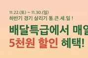 (시사미래신문) 경기도 공공배달앱 배달특급이 2025년 하반기 경기살리기 ‘통 큰 세일’에 합류한다. 경기도주식회사는 오는 30일 일요일까지 배달특급 전체 회원을 대상으로 배달특급 입점 가맹점에서 사용할 수 있는 5천원 할인 쿠폰을 제공한다고 23일 밝혔다. 해당 프로모션은 배달특급 애플리케이션 내 상반 ‘통 큰 세일’ 배너를 통해 쿠폰을 내려받아 결제 단계에서 사용할 수 있다. 예산 소진 시까지 회원당 매일 1회 내려받아 사용 가능하다. 배달특급은 지난 상반기에도 경기도와 경기도시장상권진흥원이 추진한 ‘2025년 상반기 경기 살리기 통 큰 세일’에 참여한 바 있다. 당시 배달특급은 경기도 지역화폐가 연동되는 공공배달앱 3사(배달특급, 땡겨요, 먹깨비) 가운데 가장 먼저 할인 쿠폰을 소진시켰고, 가장 많은 30억 원의 거래액을 기록하며 소비자와 소상공인의 상생을 이끌어 낸 바 있다. 한편, 배달특급의 모든 이벤트는 해당 상단 배너 기능을 통해 확인 가능하며, 지역에 따라 할인 조건과 금액이 달라질 수 있어 사전 확인이 필요하다.