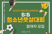 (시사미래신문) 강화군시설관리공단(이사장 박영길)에서 운영하는 청소년 문화의 집이 오는 15일~20일, 관내 중․고등 남학생을 대상으로 강화군 청소년 풋살대회 참가자(팀)를 모집한다고 밝혔다. 이번 대회는 오는 25일 강화공설운동장에서 개최되며, 참가팀은 최대 16팀(112명 이내)이다. 참가 신청은 온라인 접수(홍보 안내문 속 QR코드를 통해 접속 가능)로 진행되며, 중등부와 고등부 각 8팀씩 선착순 마감된다. 이날 참가 선수들은 예선전부터 준결승, 3․4위전, 결승에 이르는 토너먼트 방식의 경기를 통해 실력을 겨룰 예정이다. 대회에서는 우수한 성적을 거둔 1~3위 팀에 대한 시상과 공정한 경기 운영과 모범적인 태도를 보여준 팀에게 페어플레이상도 수여된다. 청소년 문화의 집 관계자는 “이번 대회를 통해 청소년들이 건강한 생활 습관을 형성하고, 스포츠를 통해 협력과 규칙 준수의 중요성을 배우며 올바른 자질을 함양할 수 있는 좋은 기회가 될 것이다”고 밝혔다. 강화군 청소년 풋살대회와 관련한 자세한 사항은 강화군시설관리공단 홈페이지를 참고하거나 청소년 문화의 집으로 문의하면