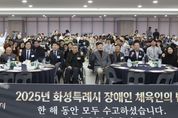 (시사미래신문) 화성특례시의회는 17일, 화성종합경기타운 3층 라운지홀에서 열린 녩년 화성특례시 장애인체육인의 밤’행사에 참석해 한 해 동안 각자의 자리에서 땀과 열정으로 값진 성과를 이뤄낸 장애인 체육인들의 노고를 격려하고 축하했다. 이날 행사에는 배정수 의장을 비롯해 이용운·최은희 의원이 참석했고, 화성특례시장애인체육회 체육 가족 등 150여 명이 함께했다. 무대는 영상 시청, 시상식, 만찬 순으로 진행됐고 한 해의 도전을 되돌아보고 서로를 응원하는 따뜻한 연대의 장으로 마련됐다. 배정수 의장은 “선수 여러분은 훈련장을 지키는 순간마다 자신의 한계를 넘어서는 승리자였고, 서로를 격려하는 순간마다 공동체의 든든한 기둥이 되어주셨다”며 “장애인체육은 특별한 누군가의 운동이 아니라, 누구나 꿈꾸고 도전할 수 있는 도시의 가장 본질적인 가치임을 여러분이 몸소 증명해주셨다”고 깊은 존경을 표했다. 이어 “누구나 운동장을 밟을 수 있고, 누구나 메달을 향한 꿈을 꿀 수 있으며, 누구나 응원받을 자격이 있다는 기본을 지켜온 것이 바로 장애인 체육인 여러분”이라며 “장애인체육을 도시 혁신 정책의 중심축으로 삼아, 여러분의