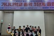 (시사미래신문) 화성특례시는 17일 화성시평생학습관에서 ‘2025년 학력인정 성인문해교실 가나다학교 졸업식’을 개최했다. 학력인정 성인문해교실 가나다학교는 사회적·경제적 이유로 학령기 배움의 기회를 놓친 만 18세 이상 비문해·저학력자를 대상으로 문해 교육을 진행하는 프로그램이다. 시는 지난 2020년 12월에 교육부 학력 인정 문해교육 프로그램 운영 기관으로 지정된 이후 학력 인정 성인문해교육을 운영하고 있으며, 올해는 지난 3월 4일부터 12월 11일까지 연 450시간의 교육과정으로 진행됐다. 시는 지난 2022년 초등 3단계 졸업생 15명, 2024년 초등 3단계 졸업생 11명을 배출한 데 이어, 올해는 처음으로 중학 3단계 졸업생 11명을 배출했다. 또한, 중학 1단계는 8명이, 초등 1단계는 9명이 수료했다. 졸업식에서는 학습자 및 가족, 강사들이 참석한 가운데, 중학과정을 마친 졸업생들에 대한 졸업장과 상장 수여, 모범 졸업생 경기도교육감 표창장 수여 등이 진행돼 학습자들의 성과를 함께 축하하고 졸업의 기쁨을 나누는 시간을 가졌다. 학습자 대표는 “가나다학교가 없었다면 학교도