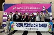 (시사미래신문) 제45회 전국장애인체육대회에 출전한 제천시장애인선수단이 눈부신 성적을 기록하며 충청북도가 목표했던 종합 4위 달성에 크게 기여했다. 지난 10월 31일부터 11월 5일까지 6일간 부산광역시 일원에서 개최된 이번 대회에 제천시선수단은 충청북도를 대표해 역도 등 총 11개 종목 31명이 참가해 금메달 8개, 은메달 4개, 동메달 2개를 획득하는 쾌거를 달성했다. 역도 백경옥, 유우정 선수는 여자 50kg급, 72kg급 데드리프트, 스쿼트 종합에서 한국신기록을 기록했다. 특히 역도 백경옥 선수는 이번 대회까지 3년 연속 한국신기록을 새로 썼다. 또한 육상 이영애 선수는 여자 원반, 창, 포환던지기에서 3관왕에 오르며 충북 육상의 위상을 높였다. 이밖에도 수영, 축구, 역도에서 은·동메달을 추가하며 이번 대회에서 제천시장애인선수단의 실력을 유감없이 발휘했다. 김창규 제천시장(제천시장애인체육회장)은 “제천을 대표해 끊임없이 노력해주신 선수단 여러분께 진심으로 감사드린다”며, “제천시 장애인 체육 발전과 더불어 제천시 장애인 복지 개선을 위해 지속적으로 노력해 나가겠다”고 전했다.