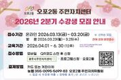 (시사미래신문) 광주시 오포2동 주민자치센터는 오는 4월 1일 개관을 앞두고 3월 13일부터 20일까지 ‘2026년 2분기 주민자치 프로그램’ 수강생 924명을 선착순 모집한다. 오포2동 주민자치센터는 지난 2022년 오포읍에서 분동된 이후 3년 만에 양벌로 336에 새롭게 조성됐다. 시는 오는 26일 개관식을 개최한 뒤 4월 1일부터 본격적인 운영에 들어갈 예정이다. 이에 따라 그동안 인근 지역 시설을 이용해야 했던 주민들의 불편이 해소되고 생활권 내에서 주민자치 프로그램을 이용할 수 있는 여건이 마련됐다. 이번 2분기 프로그램은 4월부터 6월까지 3개월간 운영되며 건강·스포츠 강좌, 문화·예술 강좌, 교육·기술 강좌, 어린이 강좌 등 총 41개 과정으로 구성됐다. 수강 신청은 3월 13일부터 20일까지 광주시 주민자치센터 누리집을 통한 온라인 접수 방식으로 진행된다. 다만, 정원 미달 강좌에 한해 3월 23일부터 25일까지 오포2동 주민자치센터에서 현장 방문 접수도 추가로 실시할 계획이다. 수강료는 강좌별로 3개월 기준 5만4천 원에서 7만2천 원까지이며, 국가유공자와 장애인, 한부모가정, 기초