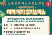 (시사미래신문) 강화군시설관리공단(이사장 박영길)이 오는 13일, 강화행복 키즈카페 남부점에서 연말을 맞아 어린이들이 즐겁고 따뜻한 추억을 만들 수 있는 특화 프로그램을 운영한다고 밝혔다. 이번 프로그램은 관내·외 어린이들에게 창의적 체험의 기회를 제공하고 가족이 함께 즐길 수 있는 연말 문화행사를 마련하고자 기획됐으며, ▲그래놀라 만들기 ▲크리스마스 카드 쓰기 ▲크리스마스 장식 풍선아트 포토존 등 다양한 체험활동으로 구성된다. 프로그램은 강화행복 키즈카페 남부점 3층 강당에서 키즈카페 이용 어린이를 대상으로 보호자 동반하에 진행되며, 회차당 30명씩 총 3회로 운영되고 신청은 선착순 현장 예약으로 받는다. 박영길 이사장은 “연말을 맞아 어린이들이 즐겁게 체험하고 가족들이 함께 따뜻한 시간을 보낼 수 있도록 다양한 체험 행사를 준비했다”며, “지역 주민들의 많은 관심과 참여를 바란다”고 전했다. 특화 프로그램과 관련한 기타 자세한 사항은 강화군시설관리공단 홈페이지를 확인하거나, 강화행복 키즈카페 남부점으로 문의하면 된다.