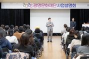 (시사미래신문) (재)광명문화재단은 3월 11일 수요일 광명시민회관 리허설룸에서‘2026년 광명문화재단 사업설명회’를 성황리에 개최했다고 밝혔다. 이번 설명회는 재단 사업에 관심있는 참여자들에게 재단의 2026년 비전과 중점 추진 방향을 공유하고, 지역문화, 공연·전시, 문화예술교육 및 지원 등 분야별 주요 사업을 소개하기 위해 마련됐다. 특히 재단에서 추진하는 공모사업은‘2026 광명문화재단 문화예술지원사업 통합공모’로 소개됐으며, 부서별 사업 설명을 통해 각 사업의 주요 내용과 운영 일정, 신청 방법 등을 상세히 안내했다. (재)광명문화재단 송은영 대표이사는 “이번 설명회는 재단이 준비한 다양한 사업을 시민 여러분께 직접 소개하고 의견을 나눌 수 있는 뜻깊은 자리였다”며 “앞으로도 더 많은 분들이 재단 사업에 관심을 갖고 편하게 참여할 수 있도록 노력하겠다”고 밝혔다. 지역 예술인과 문화예술 관계자, 시민 등 80여 명이 참석한 이번 설명회는 재단 사업에 대한 높은 관심을 확인 할 수 있는 자리였으며 촬영한 영상은 향후 광명문화재단 공식 유튜브 채널을 통해 확인할 수 있다.