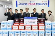 (시사미래신문) 지난 27일 수원지방법원은 수원시 영통구에 연말지역사회 나눔의 일환으로 직접 담근 김치, 라면, 화장지 각 30박스 등 총 90박스의 물품을 기부했다. 전달식에는 수원지방법원와 영통구 관계자들이 참석해 따뜻한 온정을 나누는 시간을 가졌다. 2021년부터 영통구에 정기후원을 하는 수원지방법원 봉사단체‘사랑나눔회’는 직접 김치를 담그고 후원물품을 더하여 관내 수급자, 취약계층에게 지원하며 이웃에 대한 사랑과 나눔을 실천하고 '국민에게 가까이 있는 법원상'구현에 힘쓰고 있다. 이번 후원물품은 지역 내 취약계층 30여 가구에 배분될 예정이다. 김세윤 수원지방법원장은 “작은 정성이지만 지역 주민들에게 도움이 되길 바란다. 앞으로도 지역사회외 함께하는 따뜻한 법원이 되겠다”고 말했다. 장수석 영통구청장은 “수원지방법원의 꾸준한 나눔 실천에 진심으로 감사드린다. 기탁된 물품을 도움이 필요한 가정에 소중히 전달하겠다”고 감사 인사를 전했다.