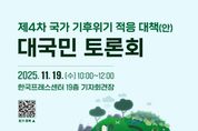 (시사미래신문) 기후에너지환경부은 11월 19일 한국프레스센터(서울 중구 소재)에서 ‘제4차 국가 기후위기 적응대책(2026~3030)’ 관련 대국민 토론회를 개최한다. 이번 토론회는 정부와 국민이 한 데 모여 기후위기에 적극 대응하는 대책을 논의하기 위해 마련됐다. 기후에너지환경부는 적응대책 수립을 위해 ‘기후위기 적응 국민포럼’을 시작으로 관계기관, 전문가, 산업계, 시민사회 등 사회 각 부문의 의견을 모아 제4차 적응대책의 초안을 마련했다. 그간의 의견수렴 결과 국민과 전문가들은 공통적으로 기후위기로 인한 사회 각 부문(재난, 농·수산, 생계, 건강 등)의 피해를 저감하기 위해 사회 전부문을 아우르는 대책 마련이 시급하다는 점을 강조했다. 아울러 산업계와 취약계층 대상으로는 현장의 실태조사를 기반으로 실제 수요에 부합하는 맞춤형 지원이 필요하다는 점을 역설했다. 이번 토론회에서는 의견수렴 과정에 참여했던 학계, 시민사회, 청년단체 등 각 부문의 국민들이 직접 참석하여 제4차 적응대책(안)을 검토할 예정이다. 제4차 적응대책(안)의 주요 내용은 기후위기 대응을 위해 국가 기반시설(인프라)을 개선