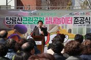 (시사미래신문) 박강수 마포구청장은 3월 13일 오후 1시 30분, 쌍룡산근린공원(염리동 532-5)에서 열린 ‘쌍룡산근린공원 실내놀이터 조성사업 준공식’에 참석해 어린이와 가족을 위한 새로운 놀이공간의 조성을 축하했다. 쌍룡산근린공원 실내놀이터는 미세먼지와 폭염, 한파 등 날씨의 영향을 크게 받지 않고 아이들이 사계절 내내 이용할 수 있도록 조성된 공간이다. 실내에는 통슬라이드와 낚시놀이, 미디어존 등 다양한 놀이시설을 갖췄고, 보호자를 위한 휴식 공간도 함께 마련해 가족 단위 이용객의 편의를 높였다. 여기에 옥상 잔디광장, 휴식 공간이 더해지면서 실내 놀이와 야외 활동을 함께 즐길 수 있도록 했으며, 주변에는 수목관찰 오솔길과 매화나무·산수유나무 등 다양한 수목과 초화류를 갖춰 어린이들이 자연을 가까이에서 함께할 수 있도록 했다. 박강수 마포구청장은 실내놀이터 내부와 옥상 공간 등을 둘러본 뒤 주민들과 함께 기념식수를 하며 현장을 살폈다. 박 구청장은 “최근 우천과 폭염, 폭설 등 날씨와 관계없이 아이들이 안전하게 이용할 수 있는 실내공간의 필요성이 점점 커지고 있다”라며, “쌍룡산