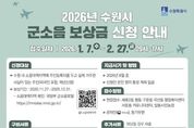 (시사미래신문) 수원특례시는 2월 27일까지 ‘2026년 군소음 피해보상금’ 신청을 받는다. 신청 대상은 2020년 11월 27일부터 2025년 12월 31일까지 수원시 소음대책지역에 주민등록을 두고 실제 거주한 주민이다(외국인 포함). 소음대책지역은 국방부 군소음포털에서 확인할 수 있다. 2월 27일까지 신청해야 한다. 정부24 홈페이지, 현장 방문, 등기 우편 중 한 가지 방법을 선택해 신청하면 된다. 현장 신청은 세류2동·평동·구운동·곡선동 행정복지센터와 서둔동 커뮤니티센터(권선구 서호로 138), 탑동시민농장(권선구 서둔로 155)에서 평일 오전 9시부터 오후 5시까지 할 수 있다. 1월 13일까지는 출생 연도 끝자리 기준 5부제를 적용한다. 월요일은 1·6, 화요일 2·7, 수요일 3·8, 목요일 4·9, 금요일 5·0 해당자가 신청할 수 있다. 온라인 신청은 정부24 홈페이지에서 ‘군소음’을 검색해서 할 수 있다. 소급 보상을 원하는 주민은 과거 연도별로 각각 추가 신청해야 한다. 등기 우편 신청은 ‘수원시 팔달구 효원로 241, 수원시청 공항이전추진단 군소음보상