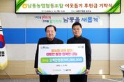 (시사미래신문) 인천시 남동구는 남동농업협동조합(조합장 한윤우)으로부터 설을 맞아 어려운 이웃들을 위해 사용해달라며 500만 원을 기탁받았다고 13일 밝혔다. 한윤우 조합장은 “임직원과 조합원들이 함께 협력해 기부 문화 확산에 이바지할 수 있어 매우 기쁘고, 주변의 이웃을 한 번 돌아보고 그들과 함께하는 정이 넘치는 설이 되기를 바란다”라고 말했다. 박종효 남동구청장은 “매년 명절마다 이웃들을 먼저 생각하며 큰 후원을 해주시는 남동농업협동조합에 감사드리며, 지역 복지 향상을 위해 소중하게 사용하겠다”라고 전했다. 남동농협은 올해도 농업의 발전과 구민에게 건강한 먹거리 제공, 우리 쌀 소비 촉진을 위한 다양한 활동을 할 계획이다.