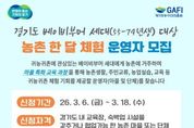 (시사미래신문) 경기도와 경기도농수산진흥원은 ‘경기도 베이비부머 농촌 한 달 체험’을 운영할 마을·단체 2곳을 오는 18일까지 모집한다. 경기도귀농귀촌지원센터의 심사를 거쳐 선정된 체험 마을·단체 한 곳당 5개 팀을 맡게 되며, 체험 운영 역량 강화를 위한 멘토 교육과 프로그램 참가자 1팀당 최대 200만 원의 운영비가 지원된다. 마을·단체는 귀농·귀촌을 준비하는 베이비부머 세대(1955~1974년생)가 한 달간 농촌에 거주하며 영농실습과 지역민 교류를 체험할 수 있도록 임시 주거지와 교육 프로그램을 제공해야 한다. 귀농·귀촌 교육 및 숙박이 가능한 도내 농촌 마을·단체라면 경기도귀농귀촌지원센터 누리집에서 내려받은 신청 서식을 전자우편으로 제출해 신청할 수 있다. 기타 자세한 사항은 누리집 공고문이나 전화 문의를 통해 확인 가능하다. 최창수 경기도농수산진흥원장은 “베이비부머 세대가 막연한 귀농·귀촌이 아닌, 충분한 체험과 준비 과정을 거쳐 안정적으로 정착할 수 있도록 지원하겠다”며 “역량 있는 마을의 많은 참여를 기대한다”고 말했다.