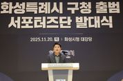 (시사미래신문) 화성특례시는 20일 시청 대강당에서 ‘구청 출범 서포터즈단’ 발대식을 개최하고 시민 참여를 기반으로 한 구청 체제 출범 준비에 박차를 가했다. 서포터즈단은 2026년 2월 만세구·효행구·병점구·동탄구 4개 구청 체제 출범을 앞두고, 새로운 행정체제에 대한 시민들의 생생한 제안사항을 시에 전달함으로써 시민들의 공감대를 높이고 성공적인 구청 출범을 위한 동력을 확보하는 역할을 하게 된다. 서포터즈단은 화성시민 누구나 참여 가능한 공개 모집을 통해 구성됐으며, 시는 구청 출범에 대한 높은 시민 열망을 반영해 당초 200명에서 300명으로 인원을 늘려 구성했다. 서포터즈는 향후 구별 회의를 통해 주민편의 증진을 위한 의견을 제시하고, 구청 출범 전후의 불편사항과 개선 필요점 등을 제안하는 역할을 수행한다. 또한, 시민과 가까이에서 일반구 출범 홍보활동을 통해 더 많은 시민에게 구청 출범에 따른 지역의 행정 변화를 알리는 시민 홍보대사 역할을 하게 된다. 이날 발대식에는 서포터즈단을 비롯해 정명근 화성특례시장과 구청체제 출범대비 TF, 시민 등이 참석한 가운데, 위촉장 수여, 서
