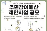 (시사미래신문) 가평군은 2027년도 예산에 반영할 주민참여예산 제안사업 공모를 3일부터 오는 5월 15일까지 실시한다. 이번 공모는 군민이 생활 속에서 필요한 사업을 직접 제안하고 예산 편성 과정에 참여할 수 있도록 하기 위한 것이다. 접수된 사업은 부서별 타당성 검토와 우선순위 선정 절차를 거쳐 2027년 본예산에 반영해 추진한다. 공모 제안사업은 △지역개발형 △생활안정제안형 △사회존중형 △문화‧체육‧관광형 △읍면제안형 등 5개 분야로 구분해 접수한다. 올해는 제도 개선 사항도 반영했다. 관광 분야의 경우 가평군민은 물론, 가평군을 방문한 외지 관광객으로까지 참여 대상을 확대했다. 또 사회존중형 분야 공모는 규모를 지난해 2억원에서 올해 총 3억원으로 늘렸다. 이는 지역개발 중심에서 벗어난 다양한 정책 아이디어를 발굴하고, 주민참여예산 참여기회를 확대하기 위한 것이다. 신청은 ‘주민e참여’ 홈페이지 온라인 접수와 가평군청 예산팀에 우편이나 팩스 전송, 읍면 행정복지센터 방문을 통해 가능하다. 군은 주민 의견이 예산 전 과정에 반영되도록 참여를 확대하고 공정하고 내실 있는 심사를 추진