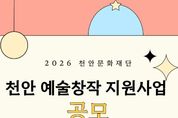 (시사미래신문) (재)천안문화재단은 ‘천안 예술창작 지원사업’ 공모를 진행한다고 13일 밝혔다. 모집 분야는 전문예술인, 전문예술단체, 신진예술인, 신진예술단체, 생애 최초 지원, 신생예술단체, 생활예술동호회, 장애인, 전통문화예술 계승 등 총 9개 사업이다. 신청 대상은 공고일 기준 천안에 주소지를 두고 예술 활동을 하는 예술인 및 단체, 동호회, 장애 예술인 및 단체다. 신청을 희망하는 경우 필수 이행 조건에 따라 공모 신청 전 천안문화 예술뱅크에 가입해야 한다. 더 많은 예술인에게 혜택을 지원하기 위해 3년 연속 보조금 수혜단체를 대상으로 1년 안식년제가 적용된다. 또 개인 예술인은 격년 지원이 적용돼 지난해 지원받은 예술인은 올해 신청할 수 없다. 신청 접수는 내달 9~ 13일 재단 예술인지원팀에 방문 또는 우편으로 하면 된다. 자세한 사항은 재단 누리집에서 확인할 수 있다.