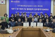 (시사미래신문) 민주평화통일자문회의 포천시협의회는 지난 2월 27일 포천시청 시정회의실에서 ‘2026년 1분기 정기회의 및 평화통일 협력 업무협약 체결식’을 개최했다. 이번 행사는 조용춘 협의회장을 비롯한 자문위원들과 업무협약 체결 기관 관계자, (사)공정평화통일국민연대 포천시지회 및 기후위기 포천시민행동 관계자 등이 참석했다. 1부 정기회의에서는 지역 내 통일 기반 조성을 위한 정책 건의와 의견 수렴이 이루어졌으며, 2026년 상반기 주요 사업에 대해 논의했다. 2부 행사에서는 지역 시민단체와 업무협약을 체결했다. 이번 협약을 통해 각 기관은 평화통일을 위한 협력 체계를 공고히 구축하기로 뜻을 모았다. 또한, 이날 행사에서는 평화통일 기반 구축에 기여한 공로로 임지은 자문위원이 경기도지사 표창을 전수받는 영예를 안았다. 조용춘 협의회장은 개회사를 통해 “이번 정기회의는 급변하는 정세 속에서 한반도 평화 공존을 위한 실천적 방안을 모색하는 뜻깊은 자리”라며, “지역 시민단체와 긴밀한 협력을 통해 포천시가 평화통일의 마중물 역할을 수행할 수 있도록 자문위원들의 지혜를 모아달라”고 당부했다.