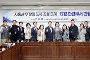 (시사미래신문) 경기 시흥시의회는 지난 11일 의회운영위원회 회의장에서 '시흥시 무장애 도시 조성 조례' (대표발의: 김수연 의원) 제정을 위한 간담회를 개최했다. 이번 간담회는 장애인, 고령자, 임산부 등 모든 시민이 물리적·심리적 장벽 없이 안전하고 편리하게 생활할 수 있는 도시 환경을 구축하기 위해 마련됐다. 이번 간담회에는 조례안을 발의한 의원들과 관계 공무원 등 총 20명이 참여하여, 무장애 도시 조성을 위한 제도적 방향과 실질적인 이행 방안을 집중적으로 논의했다. 조례안의 주요 내용은 ▲무장애 도시 조성의 법적 기반 마련 및 추진위원회 구성 ▲무장애 시설 점검 및 평가를 위한 모니터링 체계 구축 ▲ 참여 기관 등에 대한 재정지원 및 인센티브 부여 등이 있다. 참석자들은 국내·외 우수 사례와 시흥시의 현장 실태를 공유하며, 무장애 도시 조성에 대한 근거와 실효성을 확보하는 데 깊은 공감대를 형성했다. 특히 시흥시의회는 정책의 실효성을 높이기 위해 복지·도시정책·교통 등 관계 부서 간의 유기적인 협력을 주문했다. 현장의 애로사항과 민원을 적극 반영한 시범사업을 추진하여 시행착오를 줄이고 완성