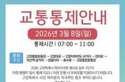 (시사미래신문) 고양특례시는 오는 8일‘2026 고양특례시 하프 마라톤 대회’ 개최 로 고양시 주요 도로에서 교통 통제가 이루어짐에 따라 시민들의 적극적인 협조를 당부한다고 밝혔다. ‘2026 고양특례시 하프 마라톤 대회’가 열리는 3월 8일(일)에는 고양종합운동장 인근, 고양대로, 경의로, 호수로 등 고양시 주요 도로의 교통이 통제된다. 통제시간은 오전 7시부터 11시까지이다. 특히 출발시간인 오전 7시부터 8시 30분까지 종합운동장 주변의 교통 혼잡이 예상되니 우회도로 이용이 필요하다. 하프 마라톤 코스는 종합운동장사거리-일산지하차도-풍산지하차도- 백마지하차도-열병합발전소-어린이교통광장사거리-섬말다리-호수로-고양종합운동장으로 이어진다. 시는 현수막, 입간판, 포스터 그리고 주요간선도로 도로전광판을 통해 교통통제 사실을 알리고 시민들의 주의와 협조를 당부했다. 시 관계자는 “하프 마라톤 대회 개최 및 교통 통제로 인해 고양시 주요도로 이용에 제약이 발생하는 만큼 3월 8일(일) 오전에 해당 구간을 이용하는 시민들께서는 교통 통제에 적극적인 협조와 양해를 당부드린다”라고 밝혔다.