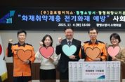 (시사미래신문) 광명소방서는 11월 4일 오후 4시, 광명소방서 2층 소회의실에서 (주)글로벌이지스, 광명희망나기운동본부와 함께 사회공헌 기탁식을 진행했다고 밝혔다. 이번 기탁식은 겨울철 소방안전대책의 일환으로 추진되는 ‘화재취약계층 전기화재 예방사업’의 일환으로 마련됐다. 이날 글로벌이지스는 전기 과부하로 인한 화재를 초기에 차단할 수 있는 자동소화멀티탭(엘리펀탭) 312개를 광명희망나기운동본부를 통해 기탁했으며, 기탁 물품은 겨울철 화재위험이 높은 취약계층 가정에 순차적으로 전달될 예정이다. 특히, 전기화재 예방 제품을 개발해 온 글로벌이지스와 지역 복지안전망 역할을 수행 중인 광명희망나기운동본부가 함께한 이번 협력은 민간기업과 공공기관이 힘을 모아 시민의 안전을 지키는 뜻깊은 사례로 평가된다. 행사에는 이종충 광명소방서장을 비롯해 윤혜빈 글로벌이지스 본부장, 이세열 광명희망나기운동본부 본부장 등 관계자 20여 명이 참석했고, 참석자들은 기탁식 이후 취약계층 주거환경 개선과 전기화재 예방을 위한 협력 방안을 논의했다. 이종충 서장은 “지역 기업과 복지협의회의 따뜻한 나눔이 시민의 생명과 안전을