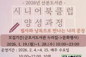 (시사미래신문) 군포시산본도서관은 2026년에도 관내 시니어들에게 책을 통해 서로 소통하고 공감하는 능동적 독서교육 프로그램인 ‘시니어 북클럽 양성 과정’을 운영한다고 밝혔다. 이번 교육은 2월 4일부터 4월 15일까지 매주 수요일 오전 10시부터 12시까지 총 10주차로 진행되며 북클럽 운영을 위한 운영법, 글쓰기 방법, 주제도서의 낭독과 필사 등에 대해 교육하여 시니어 독서동아리로 자발적인 활동을 할 수 있도록 실전교육 위주로 진행된다. 산본도서관에서 2025년도에 ‘낭독과 필사로 떠나는 글쓰기 여행’ 수업을 맡았던 최선화 강사가 진행하며 도서관은 교육 기간 중, 신규 시니어 독서동아리를 모집 및 결성하여 지속적인 독서 모임 활동을 지원할 계획이다. 함께 글쓰기 및 독서에 관심있는 관내 55세 이상 시니어라면 누구나 신청 가능하며, 1월 19일부터 선착순으로 20명을 모집한다. 신청은 군포시도서관누리집 문화행사신청 또는 전화 접수가 가능하다. 하은호 군포시장은 “앞으로 산본도서관이 시니어 세대가 책으로 하나 되는 소통공간이 될 수 있도록 다양한 독서교육 프로그램을 운영하겠다”라며 “독서교육을 통