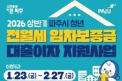 (시사미래신문) 파주시는 청년가구의 주거비 부담을 완화하기 위한 청년 전월세 임차보증금 대출이자 지원사업 신청을 오는 1월 23일부터 2월 27일까지 받는다. ‘청년 전월세 임차보증금 대출이자 지원’은 파주시에 주민등록을 둔 무주택 가구 중 제1금융권에서 전월세 보증금 대출을 받은 19~39세 청년에게 대출 잔액의 2% 이자(연 최대 200만 원)를 지원하는 사업으로, 상·하반기 각 10가구를 선정해 최대 100만 원씩 반기별로 총 2회 지급한다. 신청 대상은 1986년 1월 20일부터 2007년 1월 21일 사이에 출생한 청년으로 하며, ▲공고일 기준 세대원 전원 무주택자 ▲기준 중위소득 180% 이하(1인 가구 기준 461만 6천 원) ▲파주시에 소재한 주택으로 전세 임차보증금 3억 이하(월세의 경우 전월세 전환율 6.7% 이하) 및 전용면적 85㎡ 이하의 주택에 거주해야 한다. 단, 기초생활보장수급자(생계, 의료, 주거급여)와 공공임대주택 거주자, 버팀목 대출 등 주택도시기금을 통해 전세자금을 대출받은 사람, 금융권의 대출 용도가 신용·일반 용도인 경우는 지원 대상에서 제외된다. 지원을 원하는