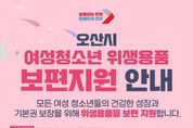 (시사미래신문) 오산시는 관내 11세부터 18세까지의 여성청소년을 대상으로 '여성청소년 위생용품 보편지원 사업'을 추진한다고 밝혔다. 이번 사업은 여성청소년의 경제적 부담을 완화하고 건강한 성장 환경을 조성하기 위해 생리용품 구입비를 지원하는 사업이다. 다만 여성가족부가 시행하는 기초생활수급자·차상위계층·한부모가족 대상 여성청소년 생리용품 바우처 지원사업과는 중복 지원이 불가하다. 지원 대상은 오산시에 거주하는 11세부터 18세까지의 여성청소년으로, 등록 외국인과 국내거소신고자 등 외국인 청소년도 포함된다. 지원 금액은 1인당 월 1만1,800원, 연 최대 14만2,000원이며 오산시 경기지역화폐 모바일 ‘오색전’으로 지급된다. 지원금은 오산시 내 지역화폐 가맹 편의점인 CU, GS25, 세븐일레븐, 이마트24 등에서 사용할 수 있으며, 배달특급 앱을 통한 온라인 구매도 가능하다. 신청 기간은 2026년 3월 4일부터 예산 소진 시까지이며, 온라인 신청은 3월 4일 오전 10시부터 3월 31일 오후 6시까지 가능하다. 신청은 경기민원24 온라인 신청 또는 주소지 관할 행정복지센터 방문을 통해 할 수