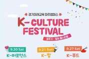 (시사미래신문) 경기도평생교육진흥원은 오는 20일과 21일, 27일 총 3회에 걸쳐 우리 음악과 음식, 전통문화 등을 아우르는 복합 문화축제 ‘K-컬처페스티벌’을 연다. 행사는 경기미래교육파주캠퍼스(구 파주 영어마을)에서 진행되며 ▲20일 K-퍼포먼스 ▲21일 K-POP ▲27일 K-푸드 등 회차마다 차별화된 테마로 방문객에게 다양한 한류문화 체험 경험을 제공할 예정이다. 첫날 20일에는 K-POP 커버댄스, 비보잉, 코레오 댄스를 비롯해 예능 스트릿우먼파이터 출연팀인 ‘원밀리언’의 축하공연이 진행된다. 21일은 자우림, 리센느의 축하공연을 시작으로 ‘K-POP’ 기반 퀴즈대회와 OST, 록 음악 등 다양한 장르 무대가 펼쳐진다. 27일은 ‘K-푸드’ 테마로 추석 명절 분위기를 미리 체험할 수 있다. 가족 단위 방문객이 함께하는 ‘대형 비빔밥’과 ‘장수 인절미’ 체험, 국악·풍물놀이 공연, 널뛰기·제기차기 같은 전통놀이가 준비돼 세대가 함께 즐길 수 있는 프로그램으로 구성됐다. K-드라마 연기체험, K-POP 보컬체험, 한지 전등갓 만들기 등 40여 종의 체험프로그램 역시 무료로 즐길 수 있다. 이