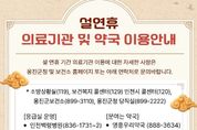 (시사미래신문) 옹진군은 설 연휴 기간인 2월 14일부터 2월 18일까지 5일간, 의료공백을 최소화하고 응급환자 발생에 신속히 대응하기 위해 '설 연휴 응급진료체계'를 운영한다고 밝혔다. 군은 연휴 기간 중 보건소 내 ‘응급진료상황실’을 설치·운영하고, 지역응급의료기관을 중심으로 24시간 비상진료체계를 유지한다. 특히 연육되지 않은 도서지역 특성을 고려하여 보건지소·보건진료소와 유관기관 간 긴밀한 협력체계를 유지할 방침이다. 보건소는 연휴 기간 응급환자 발생 상황을 총괄 관리하며, 관내 보건지소 8개소와 보건진료소 11개소는 응급환자 진료 및 이송을 지원한다. 휴진이 발생할 경우 관할 보건지소 및 유관기관과 연계한 응급환자 이송체계를 가동해 업무 공백을 최소화할 계획이다. 또한, 백령병원(인천광역시의료원 백령병원)은 지역응급의료기관으로서 24시간 비상진료체계를 유지하며, 문 여는 병·의원 및 약국 7개소도 연휴 기간 주민 진료 편의를 지원한다. 군은 재난 및 다수사상자 발생 상황에도 대비해 119 등 관계기관과 협력체계를 유지하고, 신속 대응이 가능하도록 비상연락망을 상시
