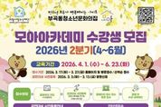(시사미래신문) (재)의왕시청소년재단 부곡동청소년문화의집이 청소년들의 창의성과 실천 역량을 키우는 배움의 장을 조성하기 위해‘2026년 모아아카데미 2분기(4~6월)’ 수강생을 모집한다. 이번 과정은 ▲창의 ▲미디어 ▲문화창작 3개 분야로 구성되어 있으며, 브레인큐브 ·보드게임·웹툰·ITQ 자격증 등 청소년들의 관심을 사로잡을 다양한 프로그램으로 구성됐다. 총 8개 프로그램 13개반이 이번 강좌로 개설되며, 부곡동청소년문화의집은 청소년들이 자신의 흥미와 진로 방향에 맞춰 주도적으로 학습을 선택하고 경험할 수 있도록 프로그램을 체계적으로 구성했다. 아울러, 강좌 특성에 맞춘 맞춤형 운영을 통해 참여 중심의 수업 환경을 마련하고, 청소년들이 스스로 배우고 성장하는 과정을 경험할 수 있도록 했다. 강좌의 신청은 3월 17일부터 3월 27일까지 온라인(홈페이지)로 하거나 방문으로 가능하다. 아울러, 수강료 감면 혜택을 희망하는 청소년은 사전등록이 필요하다. 하반기 감면 사전 등록 기간은 3월 13일까지이며, 최근 3개월 이내 발급된 관련 증빙 서류를 지참해 부곡동청소년문화의집으로 방문 등록해야