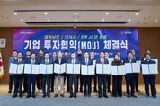 (시사미래신문) 국내외 기업 투자 유치를 핵심 과제로 추진 중인 충남도가 이번엔 14개 기업으로부터 5000억 원 이상의 투자를 이끌어내며 충남의 지속 가능한 미래 발전 발판을 다졌다. 김태흠 지사는 26일 도청 대회의실에서 김석필 천안시장 권한대행 등 6개 시군 단체장 또는 부단체장, 이동주 성창오토텍 대표이사 등 14개 기업 대표와 투자협약을 체결했다. 협약에 따르면, 14개 기업은 2029년까지 6개 시군 산업단지 등 50만 64㎡의 부지에 총 5090억 원을 투자해 생산시설을 신·증설하거나 이전한다. 이들 기업이 계획대로 가동할 경우 신규 고용 창출 인원은 526명으로 예상된다. 천안 북부BIT일반산단에는 4개 기업이 생산시설을 신·증설한다. 자동차용 부품업체인 성창오토텍이 2만 3225㎡부지에 542억 원을 투자해 공장을 새롭게 만든다. 또 반도체·PCB 표면 처리 장비 전문업체인 하이쎄미코가 132억 원을 투자해 6311㎡부지에 공장을 신설하며, 산업용 로봇 제조업체 아라는 100억 원을 투자해 1100㎡부지에 생산시설을 확장한다. 수입 과일 유통·가