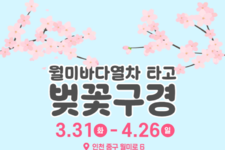 (시사미래신문) 인천교통공사(사장 최정규)는 오는 31일부터 월미바다열차에서 '벚꽃 시즌 특별 운영'을 실시한다고 30일 밝혔다. 이번 특별 운영은 월미도의 벚꽃 개화 시기에 맞춰 열차 연장 운행과 테마 콘텐츠를 통해 시민들에게 봄철 볼거리와 체험 기회를 제공하기 위해 마련됐다. 공사는 운영 기간 동안 열차 내부를 벚꽃 디자인으로 꾸민 '벚꽃 테마 랩핑 열차'를 운행한다. 또한 월미바다역 대합실에는 벚꽃 테마로 구성된 포토존을 설치해 방문객이 사진 촬영을 즐길 수 있도록 했다. 벚꽃 절정기로 예상되는 4월 9일부터 12일까지 4일간은 기존 화~목 18시, 금~일 19시까지였던 운영 시간을 21시까지 연장해 운행한다. 이에 따라 막차는 20시에 출발한다. 개화 상황에 따라 일정은 일부 조정될 수 있다. 현장 참여형 이벤트도 운영한다. 4월 10일부터 12일까지 월미바다역에서 당일 승차권 이용객을 대상으로 '벚꽃 룰렛 이벤트'를 진행한다. 이벤트는 16시부터 18시까지 운영된다. 경품은 월미바다열차 평일 이용권 등 다양한 상품이 제공된다. 또한 4월 9일부터 26일까지 열차 또는 포토존에서 촬영한 사진을 개인 SNS에 게시하면 추첨을 통해 기프티콘을 제공하는 이