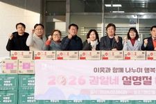 (시사미래신문) 이재식 수원특례시의회 의장은 2월 6일 오후, 권선1동 행정복지센터에서 열린 설 명절 이웃사랑 나눔 전달식에 참석했다. 이날 전달식에는 김은경 의원(더불어민주당, 세류1·2·3·권선1)도 함께했다. 이 자리는 설 명절을 앞두고 지역 내 저소득 가구에 따뜻한 정을 전하기 위해 마련됐으며, 권선1동 단체장과 시·도의원, 주민 등이 함께했다. 전달식에서는 관내 저소득가구 447가구를 대상으로 온누리상품권과 식료품, 생필품 등이 전달됐으며, 사회복지공동모금회 기금과 지역 후원을 통해 지원이 이뤄졌다. 이재식 의장은 “명절을 앞두고 이웃을 먼저 생각하는 나눔이 지역사회에 큰 힘이 된다”며 “의회도 시민 삶에 온기를 더하는 나눔이 이어질 수 있도록 함께하겠다”고 말했다.