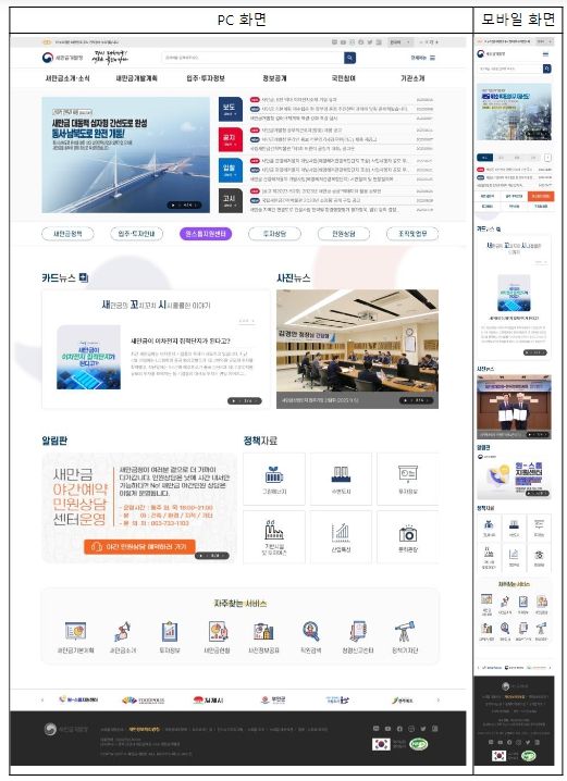 이에, 이번 개편은 새만금 개발정책 콘텐츠 보강과 사용자 편의 증진을 위하여 “국민중심 디지털서비스 이용 보장과 알기 쉬운 정보공개”에 중점을 두어 진행했다.