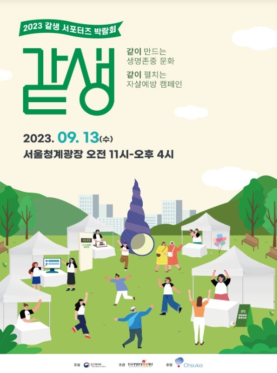 (시사미래신문) 보건복지부와 한국생명존중희망재단(이사장 황태연)은 자살예방주간(9.10~9.16)을 맞아 9월 13일 서울 청계광장에서 11시부터 16시까지 자살예방 및 생명존중문화 조성을 위한 ‘같이 살자, 같생 서포터즈 박람회’를 개최한다고 밝혔다.