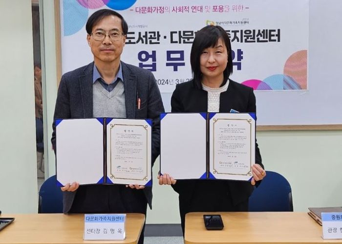 (시사미래신문) 성남도시개발공사 중원도서관은 지난 20일 다문화가족의 사회적응 및 안정적인 가족생활 지원을 위해 성남시다문화가족지원센터와 업무협약을 체결했다고 21일 밝혔다.