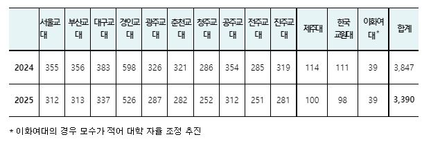 한편, 교육부는 이번 입학정원 감축이 대학의 재정 어려움으로 이어지지 않도록 대학 재정지원 사업 등과 연계 지원하고, 교원양성을 위한 자율적인 혁신도 더욱 세밀하게 지원해 나갈 계획이다.