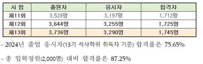 (시사미래신문) 법무부는 4월 16일 「변호사시험 관리위원회」 심의의견과 대법원, 법학전문대학원협의회, 대한변협 등 유관기관 의견을 종합하여 제13회 변호사시험 합격자를 1,745명(총점 896.02점 이상)으로 결정했다.
