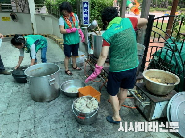 이날 행사는 새마을 지도자·부녀회원들이 이른 아침부터 닭 250마리로 정성을 담아 준비한 삼계탕과 김치를 관내 독거노인 30가구 및 경로당 6곳을 방문해 전달했다.