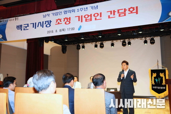 (시사미래신문) 백군기 용인시장은 지난 8일 처인구 이동읍 소재 아워홈 용인 지수원에서 남사면 기업인협의회 회원 50여명과 간담회를 가졌다.
