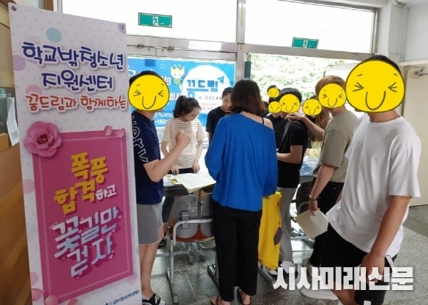 이날 아웃리치는 고사장을 방문하는 1천여 명의 검정고시 응시 학교 밖 청소년 및 학부모 등을 대상으로 응원 간식을 배부하고 학교 밖 청소년 무료 건강검진 안내·접수, 학교밖청소년지원센터 홍보 및 상담 서비스를 지원했다.