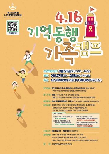 (시사미래신문) 경기도교육청4.16생명안전교육원이 오는 19일부터 다음달 3일까지 도내 초, 중, 고등학생 또는 학교 밖 청소년을 대상으로 ‘4.16 기억 동행 가족 캠프’참가자를 모집한다.