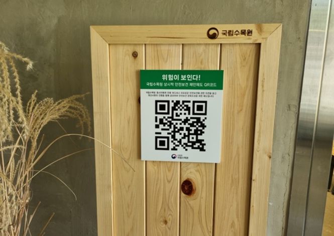 이를 위해 국립수목원에서는 근로자 또는 도급사업의 종사자들이 언제 어디서든지 위험요소를 발견하면 위험성을 바로 제보할 수 있는 QR코드를 제작하여 설치했고, 무엇보다 자신이 제보한 위험성이 어떻게 진행되고 개선되는지 알 수 있는 양방향 시스템을 구축했다.
